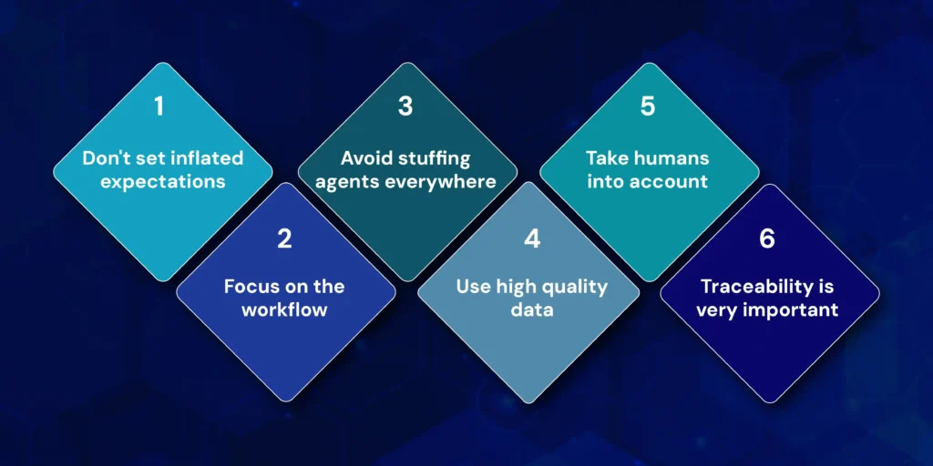 We’ve led several agentic AI cases at Xavor, which has given us the nous to implement the technology successfully. Based on that experience, we’ve gathered these six core principles for successful agentic AI implementation. These principles or best practices will help you derive value from your agentic AI investment.