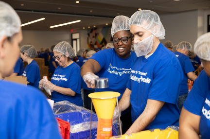 For the third Day of Service in a row, employees in Texas transformed the office into a Feed the Funnel Party with The Pack Shack. Participants grabbed their hairnets, turned up the tunes and engaged in a high energy assembly line to pack over 40,000 meals to be donated to the Plano Independent School District Food Pantry, ensuring that no student goes hungry